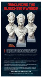 Future ‘Slaughter’ awards will be chosen by members of the public in advance ballots. Categories will include Best Film, Best TV Show, Best Home Video Distributor, Best Actor, Best Actress, Best DVD Extras, Best Book and Best Author. There will also be further Lifetime Achievement Awards voted for by genre fans worldwide.