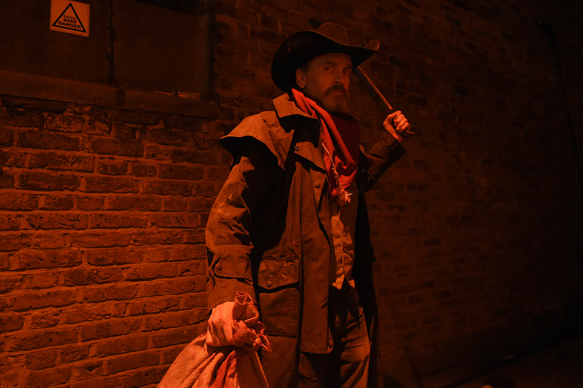 Challenged by allotment busybody Mr Parsons (Kane Hodder unbelievably in sitcom mode) to clean up his pitch or face eviction, an argument ensues, and when Mr P has a fatal rake accident – Trevor unwisely choosing to chop up the body rather than report it to the authorities for fear of being accused of murder – the now legless curmudgeon comes back to life, intent on Trevor’s brains.