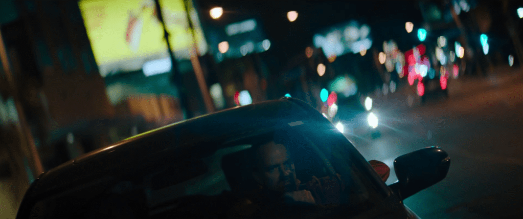 Vincent Van Horn is Andy, a teacher recently relocated from Austin, Texas to LA following a breakup with his girlfriend; it’s an area he doesn’t know at all. One evening, nursing a drink in a dive bar, he meets Sam (Christine Ko), a location finder for music festivals. They’re two lonely souls who hit it off immediately. After the bar Sam invites him home; she has already pre-booked a Ryde trip, the cab being driven by Roger (Michael Lee Joplin) who comes on a bit over friendly with Andy.