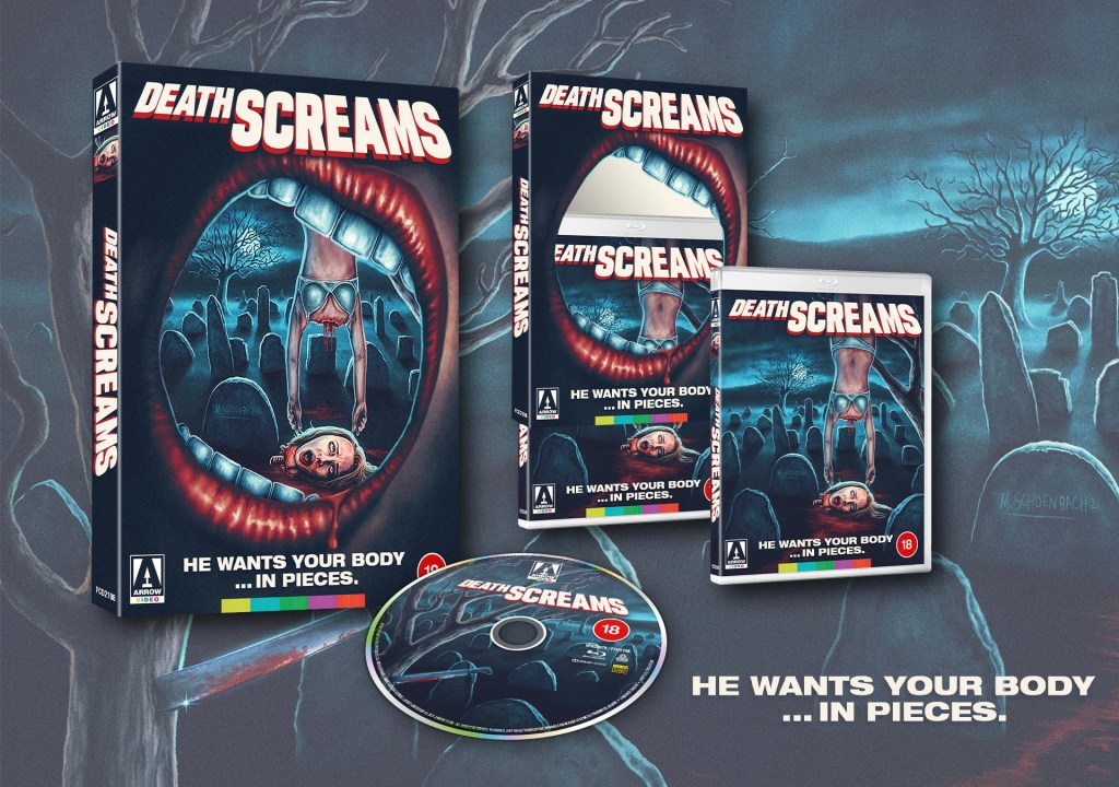 Next in a jam-packed month, Death Screams, a bodycount-heavy, long overlooked slice of Southern fried hack-and-slash from 1982. Released on US VHS as House of Death (and on UK DVD with the reels in the wrong order!), it oozes early ’80s regional slasher charm from its every pore, boasting an everything-but-the-kitchen-sink final reel featuring slashed throats, bisected bodies and exploding heads. At long last arriving on Blu-ray and lovingly restored from the only-known existing 35mm print, this little-seen slasher classic is ready to carve its way into the bleeding hearts of horror fans everywhere, with new commentaries, a new making-of doc, and a collector’s booklet, with a Limited Edition Blu-ray, and an Arrow Store O-card exclusive!