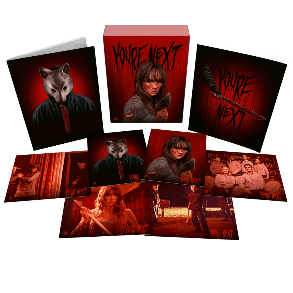 You’re Next in line to discover the new Limited Edition release from Second Sight Films. The sumptuously sinister and riotously entertaining home invasion horror from dream team director Adam Wingard (V/H/S, The Guest, Godzilla x Kong: The New Empire) and writer Simon Barrett (V/H/S, The Guest, Blair Witch), who join forces to create this critically acclaimed splatter-fest, which is set to thrill and chill once again more than 10 years on from its original release.