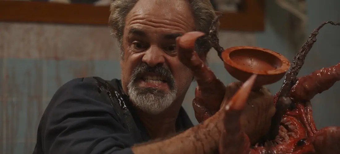 Don and Sonny report to the fancy Palmer Estate, where a resident has reported a blocked toilet. But things are about to get ugly; another resident, who’s been working on a secret project (Project X of course) has taken his work home with him; the resultant creature bites him and escapes into the estate’s toilet system, where it pops up to attack the residents. Don and Sonny, together with receptionist Patricia (Chelsea Clark) try and keep a lid on the mayhem while working out how to exterminate the toilet monster.