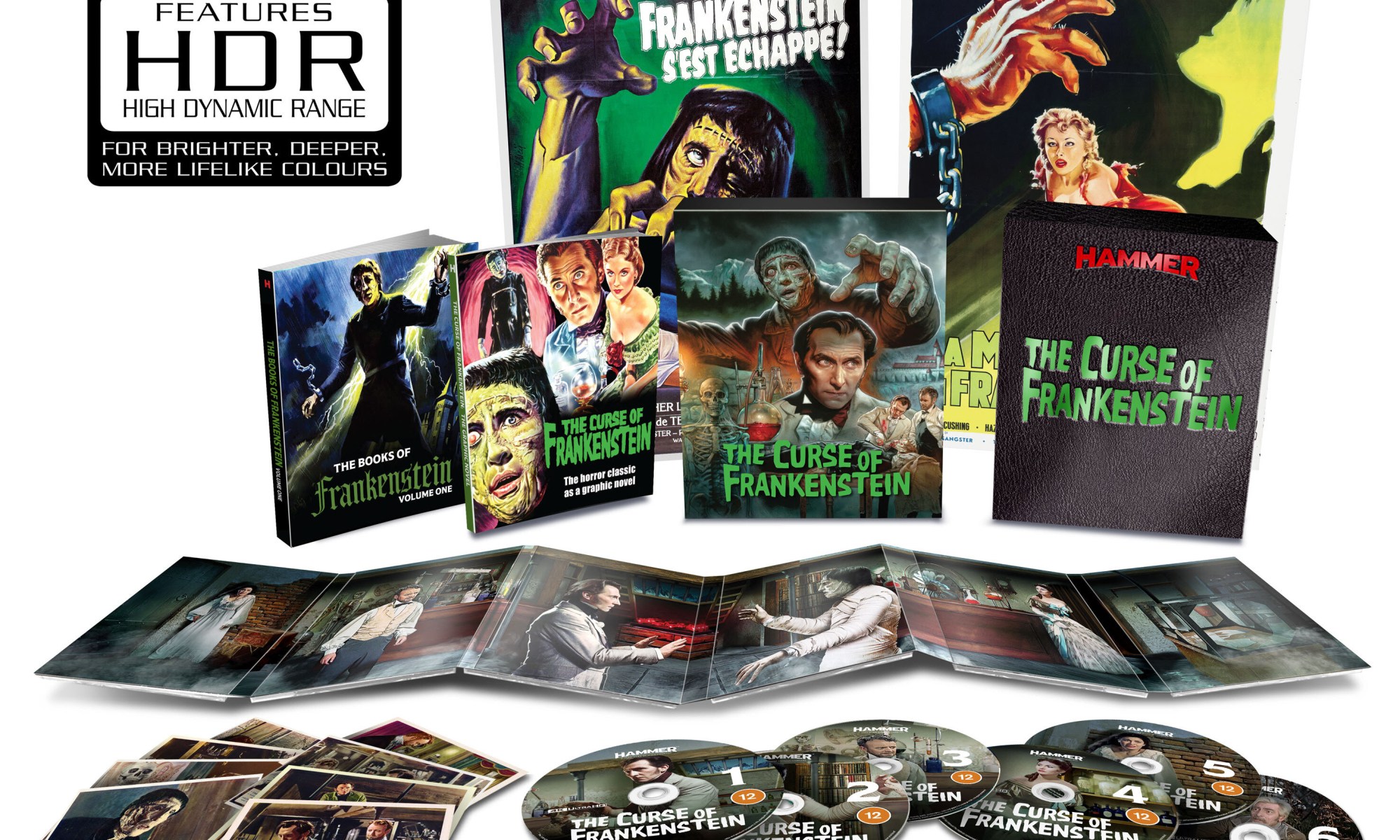 Extensive archival documentaries, including Frankenstein Reborn, The Resurrection Men and, on the Limited Edition-exclusive disc 6: feature length Hammer documentary Flesh and Blood